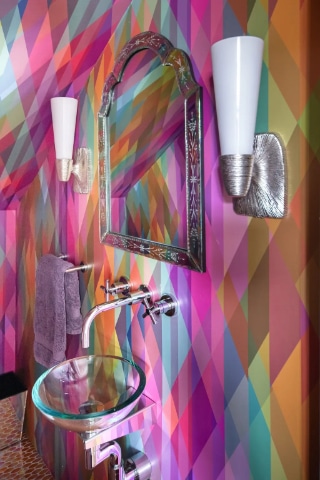 Prokesh designed the wallpaper based on Andy Warhol’s Chanel perfume bottle artwork. Even a Smeg refrigerator was designed into the mix because we all need a glass of champagne when getting party-ready!