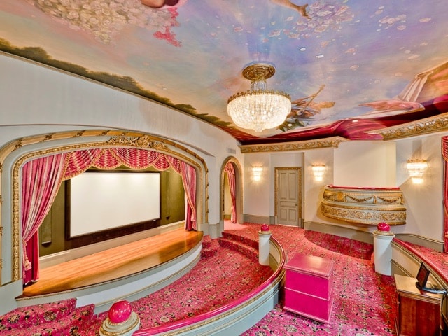 Much of the decor is also for sale, including a 150th anniversary Steinway grand piano, an antique Louis XIV embossed leather portrait, antique King Louis chairs and marble table, and a circa 1860 antique church confessional. Also for sale, all master bedroom furniture, bedroom sets, outdoor and indoor dining furniture, rugs, lamps, bar stools, home gym equipment, an antique wine corker, and Jan Barboglio bench.
