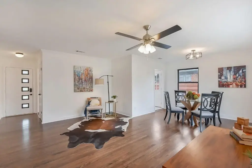 With a classic high-pitched roof and all-white exterior paint, this next home looks really cool from the curb. Inside, it’s been fully renovated and is ready to welcome its next generation of residents.
