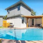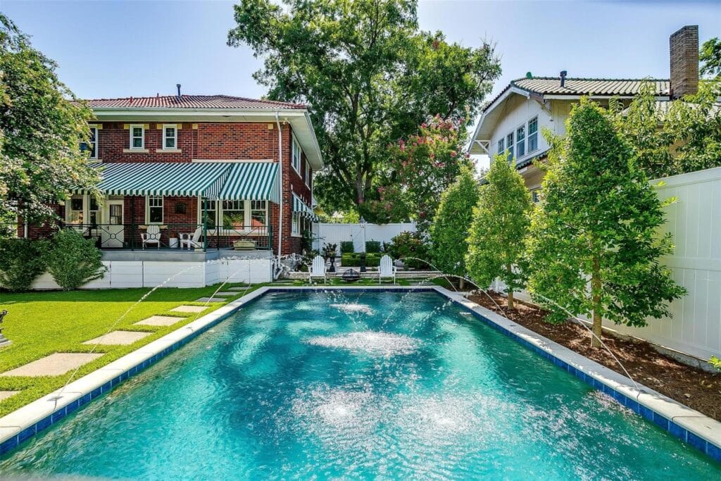 The long, elegant pool is a recent add-on, which still leaves plenty of green space for … Croquet? Attached to the two-car garage at the back is an apartment that is also fully updated with a full kitchen.