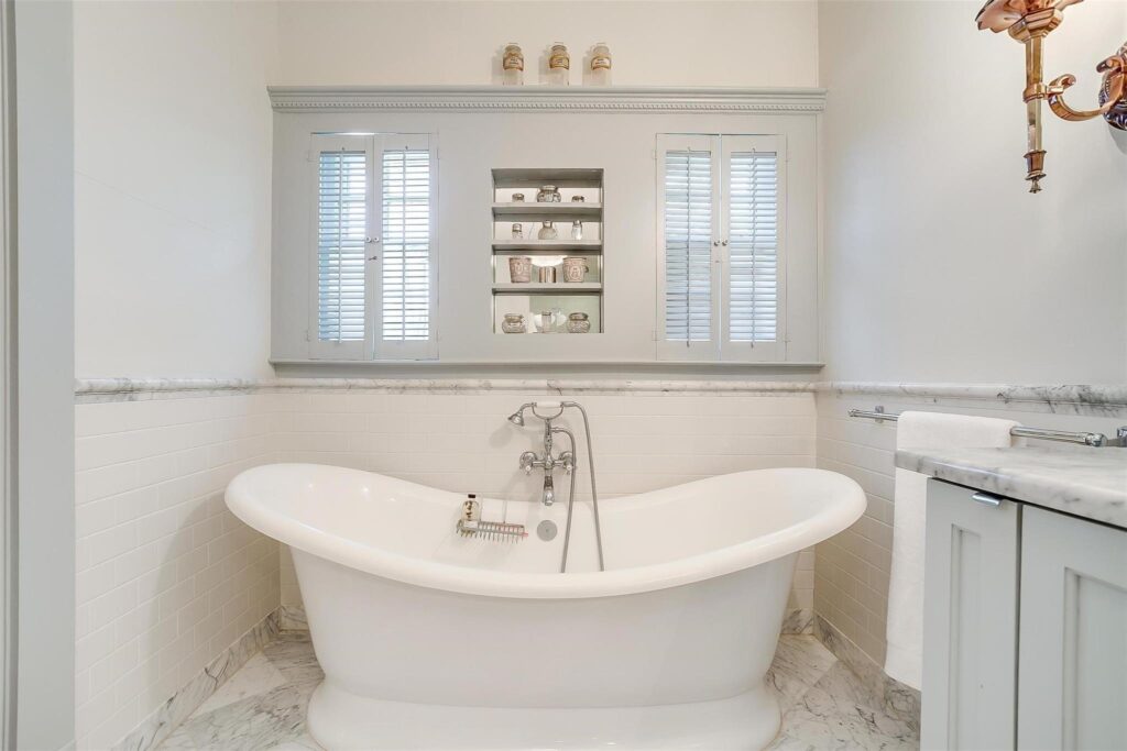 Even with a house of this caliber with bespoke, A-list updates, there is usually something to grouse about. I had to look hard to find anything I would change. The kitchen is large and a comfortable gathering place for company, including a long island with bar seating. Also, I’m really feeling the tomato ceramic tile floors. If I am forced to nit-pick I might want more interesting back splashes and countertops, but I love the vintage cabinets, which were replicated for the island.