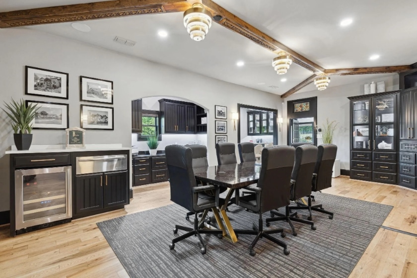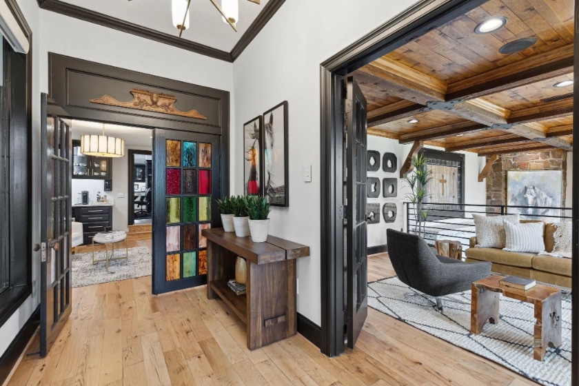 Today, this is the ultimate private Argyle luxury retreat. Set on more than 6 acres with a pond, stables, a sand volleyball court, and a sports court, Michaels indeed pulled out all the stops in the 7,474-square-foot home. There’s a whiskey room, a hearth room, a home office, and that fantastic one-of-a-kind game room with a fireplace, a piano, and a hot tub!