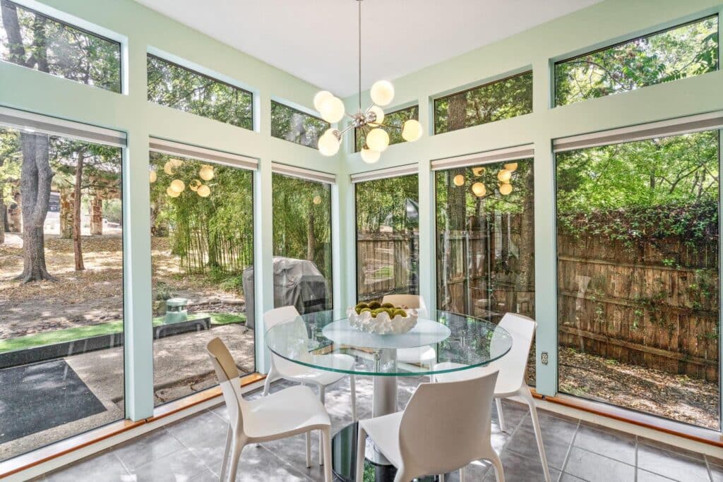 It’s filled with floor to ceiling windows in every room offering the most glorious views of nature. The house itself is on a corner lot in a little alcove of homes called Easton Place. There are about 26 homes total so it’s a super tightknit community where neighbors are still neighbors.