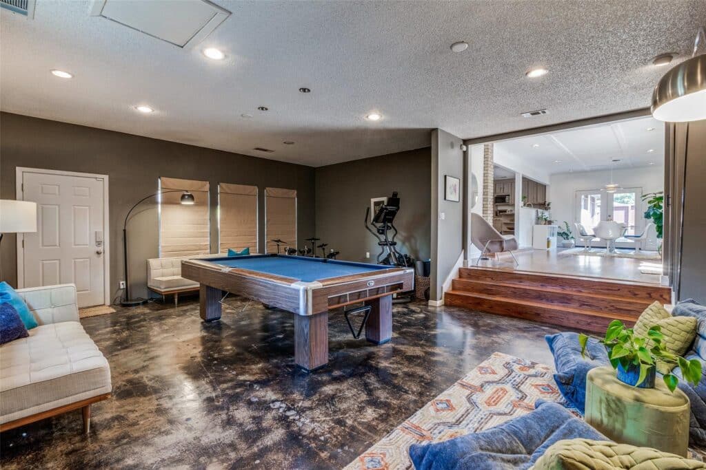 The game room is a nice addition with concrete floors and enough room for a pool table or twenty-person couch. Do they make those? They should.
