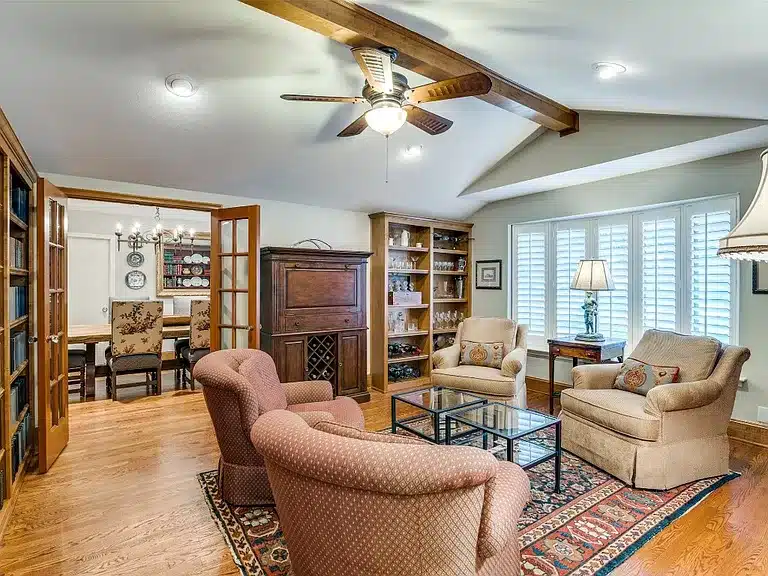 Then, this home raises the wow factor with a formal library. Surrounded by elegant shelving and enchanting design, this is an excellent space for taking a timeout and relaxing with a good book.