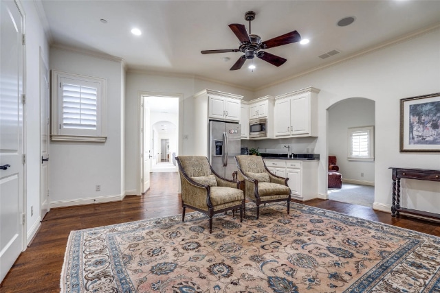 Three large ensuite bedrooms each feature generous private loft spaces and a common study area. A home gym and game room on this floor can be accessed by a secondary staircase leading up from the kitchen. It’s only a few steps further to the extensive and private guest quarters with a living area, wet bar, large walk-in closet, and a balcony off the bedroom. The quarters have a dedicated private staircase leading to the grounds.
