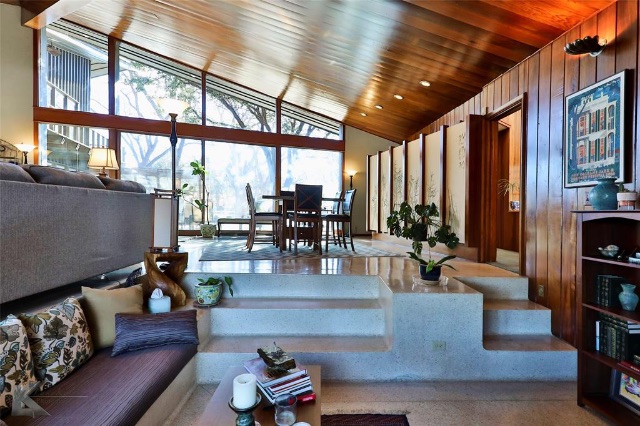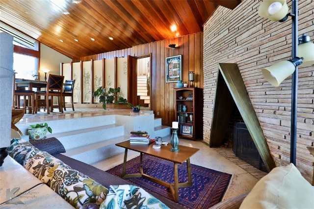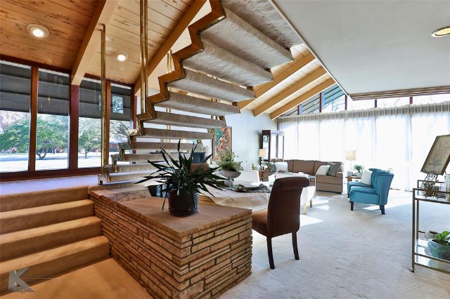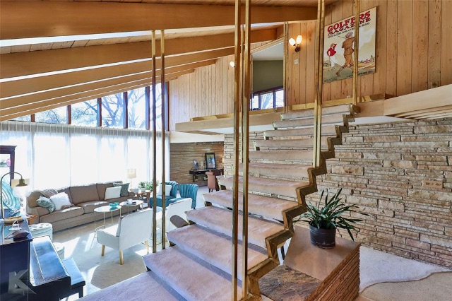 Abilene’s Barnett & Hill’s John Hill describes the design as exotic mid-century. He said the Crees never had children and that might be one of the reason the rail-less descend into the conversation pit and ascend to the balcony and guest room were able to fly. Though it could occasionally prove tricky for adults too.