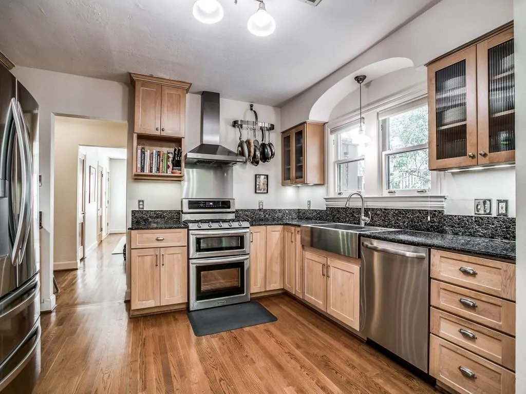 Of course, it’s undergone updates since the Mrs. Baird’s Bread Company salesman once walked through the arched, oversize Oak front door at the end of a long work day. The sellers have preserved the historical architectural features while updating any obsolete features and functions. (Well, except for the “speakeasy grill” in the front door, a popular doorway fixture for homes built during Prohibition 1920-1933.)