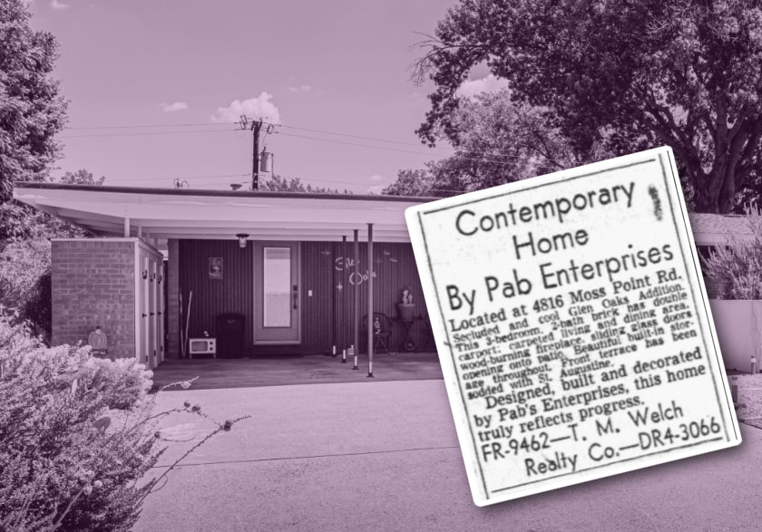 The “unusual” house was designed, built, and decorated by Pab Enterprises, which was a company on the leading edge of building technology that boasted progressive, modern homes as a new concept for living in the Texas climate.