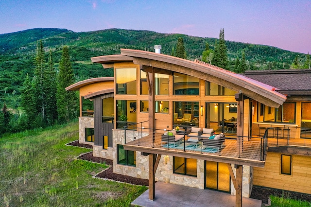 “There are no neighbors on three sides.” And all four sides are surrounded by privacy fencing. The stain on the backyard fence was selected “to look like bark, so it would almost blend in.”