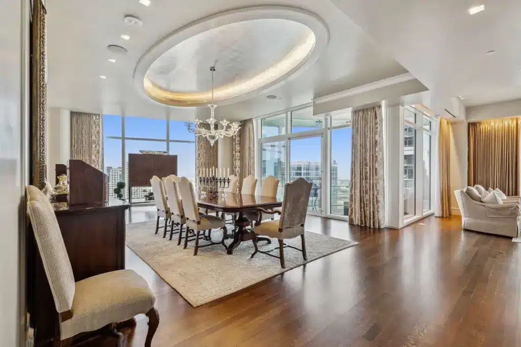 “It truly is a mansion in the sky,” Cook says. “The design reminds me of a home you would find in old Preston Hollow featuring sophisticated elegance throughout. It’s rare to find this level of detail in today’s high-rise condominiums.”