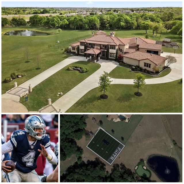 The main house has five bedrooms, five bathrooms, four powder baths, a glass-enclosed wine room, a 12- person theater, and a gym. The guest house has a full kitchen, screened porch, and a separate driveway.