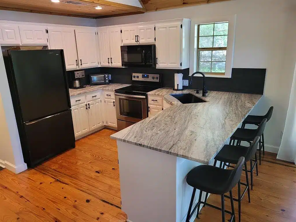 Then, the kitchen is modern and updated with stunning granite counters, sleek appliances, and bountiful cabinet space.