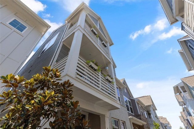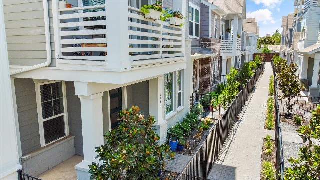 Kitchen cabinets go to the ceiling and the stainless vent hood and railing give the home a modern flair. Outdoor spaces are also plentiful in this home. Enter into the property through a gated courtyard, and balconies off the second and third floors allow for room to enjoy fresh air, wave to your neighbors and friends, or let the legumes grow.