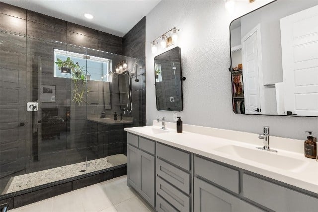 The primary suite not only has two storage closets but the bathroom has a spa-like “super shower.”