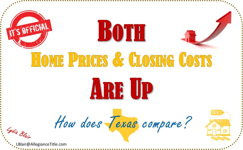 The closing cost data, announced by ClosingCorp, calculated the cost of title insurance, appraisals, settlement fees, recording fees, surveys, and transfer taxes. We don’t have transfer taxes in Texas.