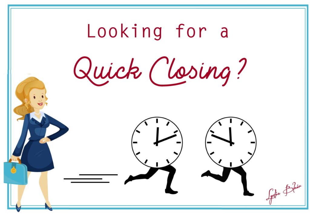 A quick closing takes some fast action from the buyer, the seller, and their title company. Some diligent effort needs to come from everyone to make it happen.