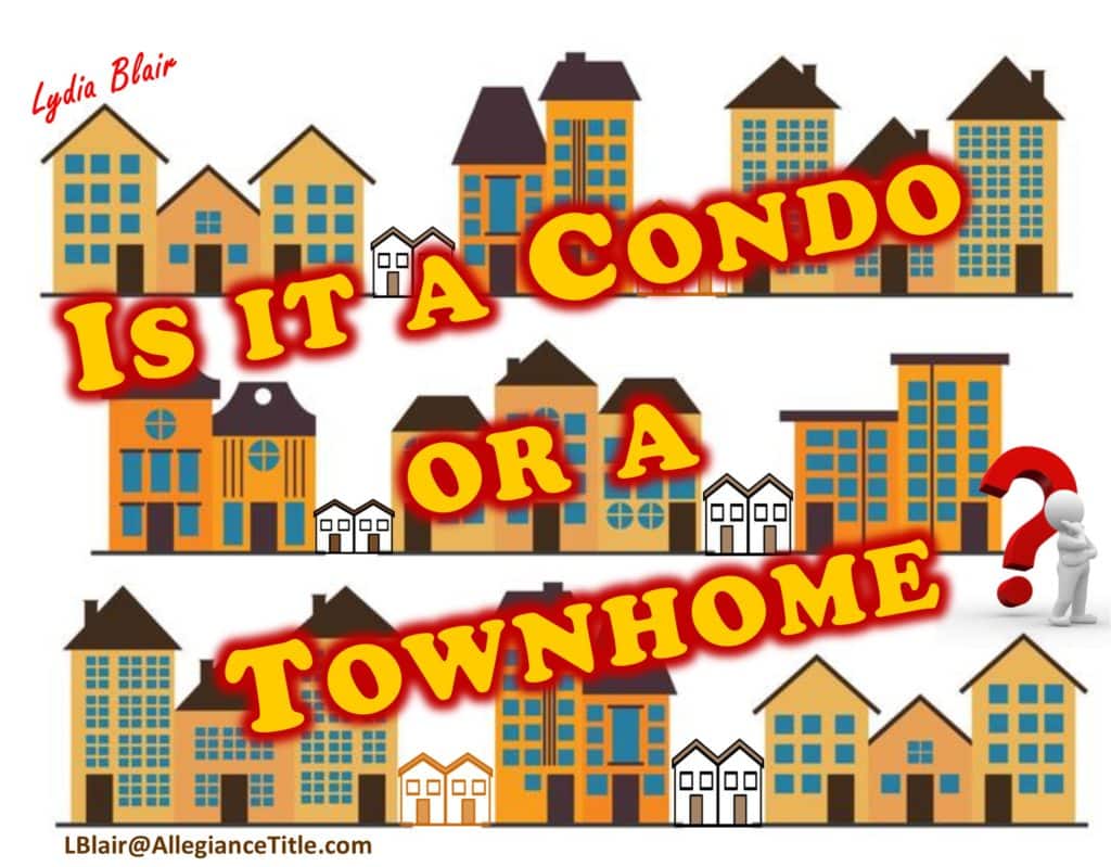 Just because the property sits on the ground and looks like an attached house, doesn’t make it a townhouse. And a condominium doesn’t always look like an apartment. There are condos that look like townhomes and vice versa. The appearance or physical description is not a true verification of the type of property.