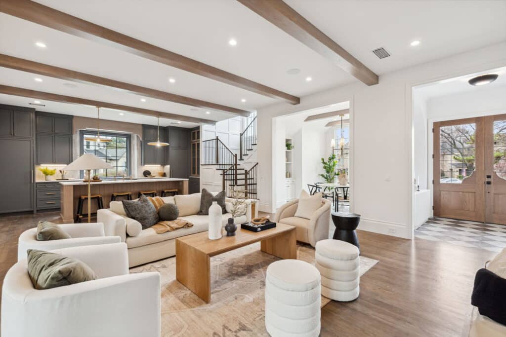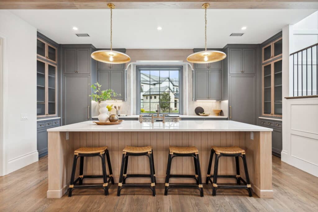 The open-concept kitchen, living room, and dining area are where laughter, real life, and the aroma of home-cooked meals meet and mingle. The kitchen is a playground for culinary creativity, a space where the clinking of pots and pans becomes a soundtrack for daily life.