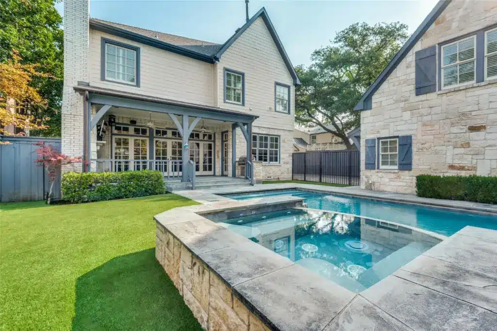 In case the new owner can’t stand the heat, there’s a place to get out of the kitchen. The backyard boasts features for Texas’ weather extremes: a pool for the hot seasons and a fireplace for the cool season. There’s also some landscaping for the cool factor.
