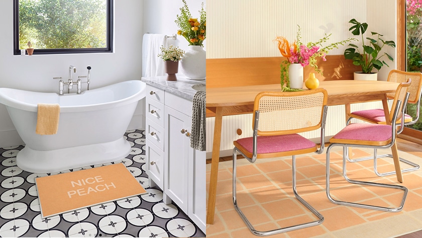 The Ruggable x Pantone Collection features five unique styles designed to inspire well-being and add a fresh pop of color to your décor. Ruggable, of course, is the female-founded, direct-to-consumer washable rug brand taking over your Instagram feed. The removable rug cover is machine-washable, water-resistant, and stain-resistant, and attaches to a nonslip Ruggable rug pad. For this collaboration, choose rugs, doormats, and our favorite, a cheeky “Nice Peach” bathmat.