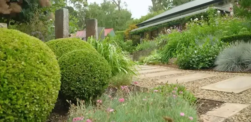 Symmetrical shrubs and flower arrangements express harmony. You should select low maintenance species like boxwoods and hydrangeas and should practice pruning to maintain the shape and outlook of plants. Ask expert landscape gardeners for advice on plant selection to consider and how to plant them best.