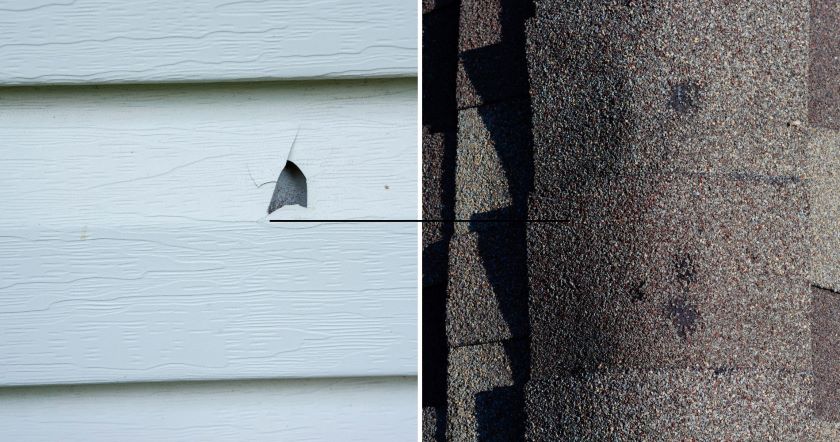 Most insurance policies will cover the replacement of vinyl siding due to storm damage. For the roof damage, replacement vs. repair will be decided based on a combination of factors such as the age of the roof, whether the roof is watertight, and how many hits the roof took. The roofer will take a sample square of 10′ by 10′ and count the number of hail bruise marks. Insurance policies differ on their requirements, but the typical number is between 7-10 marks to justify replacement.