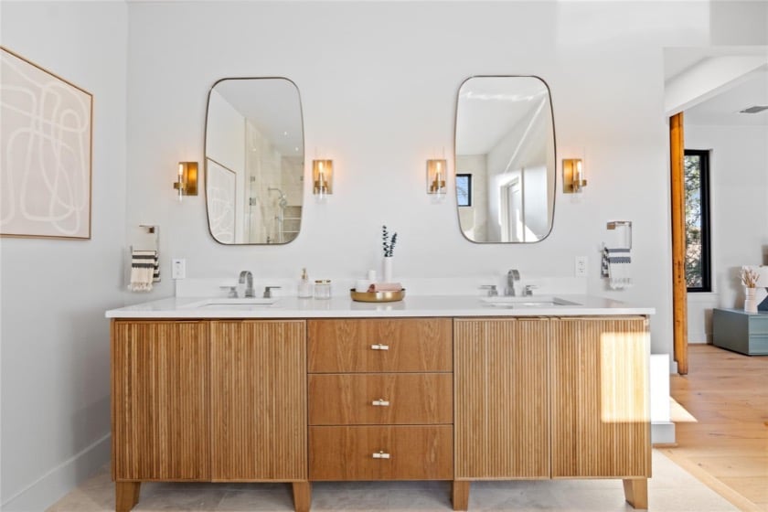 The DETAILS. In their latest project, which just listed, Ann said they created a farmhouse door leading into the primary bath. But they used a vintage door. Those are the thoughtful details that make it stand out. A creative use of space and materials.